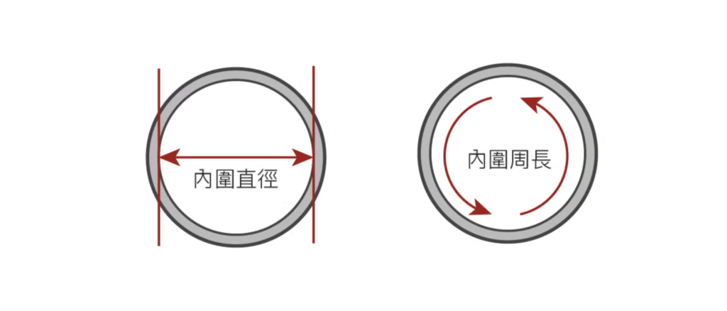 將棉線纏繞在手指上,注意不能過緊(視覺上,不要勒出肉痕即可),並保持測量工具水平,在重疊位置畫上記號。測量完成後,將棉線拉直攤平,利用直尺測量取下範圍距離,即可得出戒圍的圓周長。